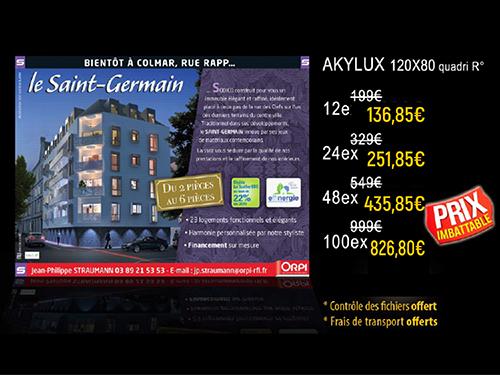 Les tarifs sont donnés par lot, avec prix dégressifs en fonction de la quantité de panneaux Akylux commandés.